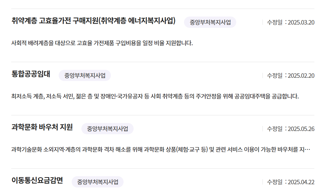 실질적인 복지혜택을 받을 수 있는 대표적인 정부지원 제도입니다.