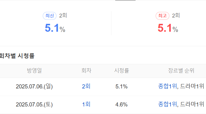 - 방영 기간: 2025년 7월 5일 ~ 8월 10일
