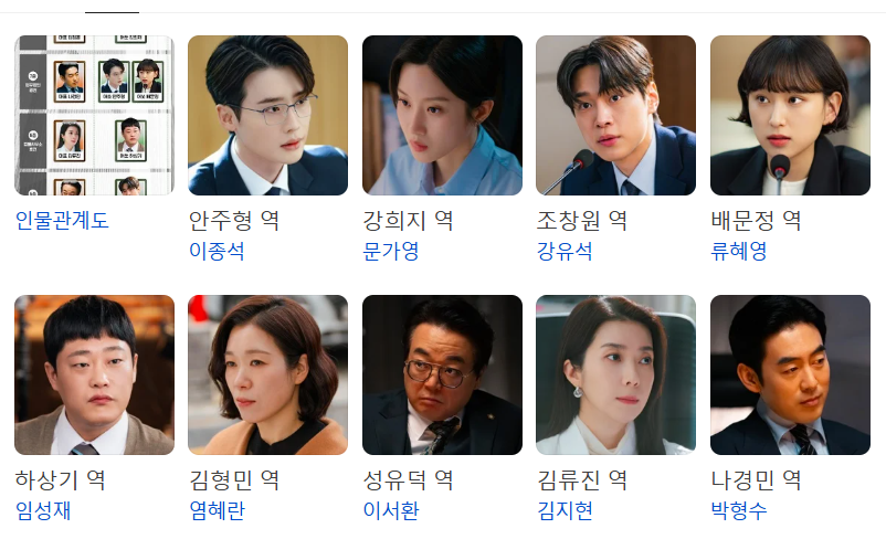 | 이종석 | 안주형 | 9년 차 어쏘 변호사, 실용적이고 냉철한 현실주의자 |