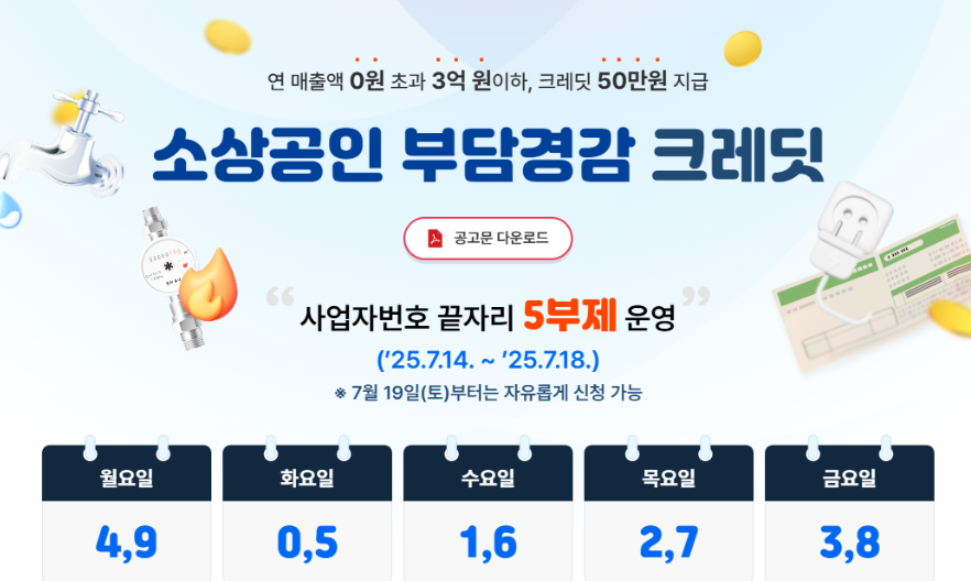 소상공인 부담경감 크레딧은 정부가 소상공인의 공공요금(전기, 가스, 수도) 및 4대 보험료 부담을 덜어주기 위해 1인당 50만 원을 카드 포인트(크레딧)로 지원하는 제도입니다. 신청 방법을 단계별로 안내합니다.